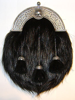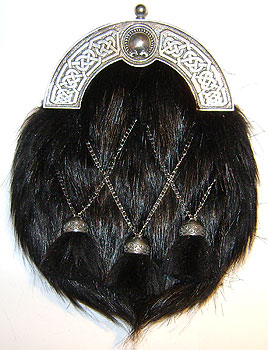Dress sporrans > Celtic torque crossed/straight faux fur black - Vegetarian Sporrans - Vegan animal free leather sporrans and belts